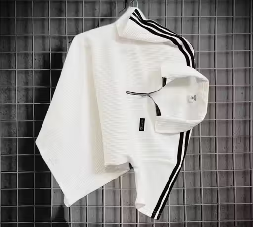 Designed for a bold athletic look, this Men’s Half-Zip Sport Stripe T-Shirt combines modern street styling with everyday comfort. The structured silhouette, contrast shoulder stripes, and functional half-zip neckline create a confident and sporty appearance.