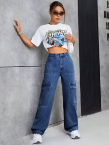 Designed for both comfort and statement style, these jeans feature a structured high-rise fit, relaxed wide legs, and utility-inspired cargo pockets that add a bold, modern edge. Made from durable yet breathable denim, they provide all-day comfort while maintaining shape and structure. Perfect for casual outings, travel, or street-style looks, these jeans pair effortlessly with crop tops, oversized tees, or hoodies for a confident, fashion-forward outfit.